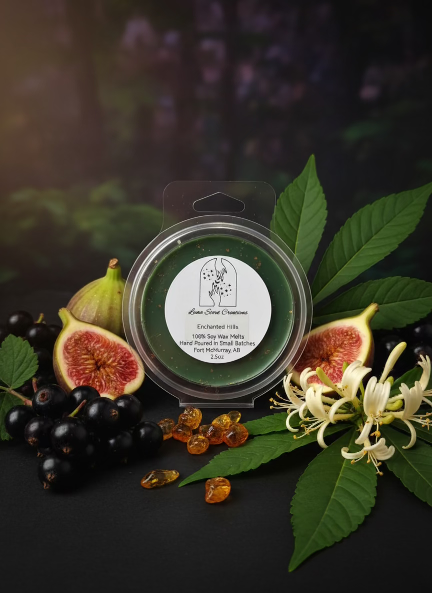 Experience the enchanting aromas of Enchanted Hills. Our wax melts combine the sweet scents of blackcurrant and figs with the alluring notes of wild honeysuckle and umbrian truffles. Infused with warm amber and woody patchouli for a truly magical and long-lasting fragrance. Elevate your home with Enchanted Hills.