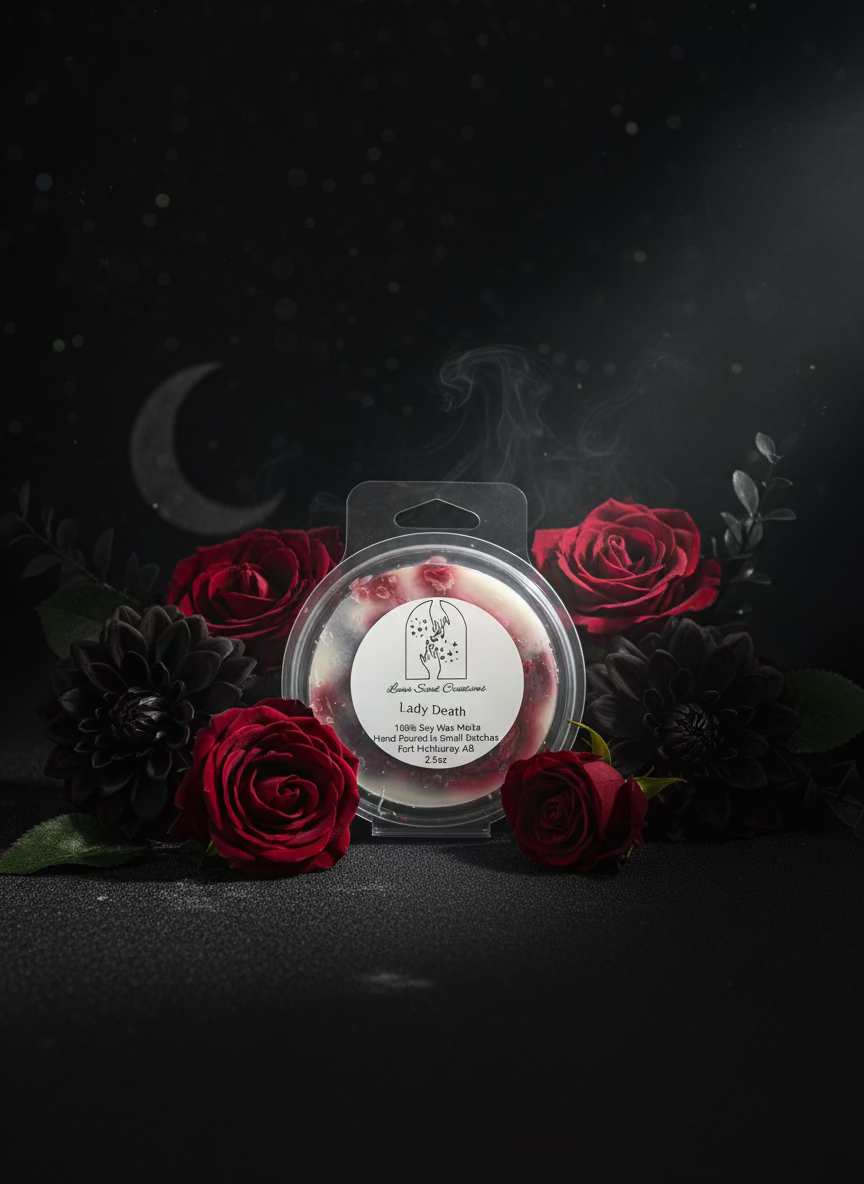 Dark, alluring, and irresistibly mysterious, our Lady Death Wax Melt channels the fierce elegance of Nesta Archeron. With deep floral notes, subtle hints of musk, and a touch of smoky sweetness, Lady Death evokes power, passion, and the intrigue of the night. Perfect for creating a bold, captivating atmosphere in any room.