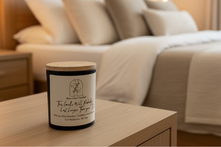 Hand poured in small batches using 100% soy wax and crafted in Fort McMurray, each candle is finished with snappy labels and artistic designs that match the scent and the mood. Pick your scent, choose your label, decide your wick, and let your rude girl energy shine.